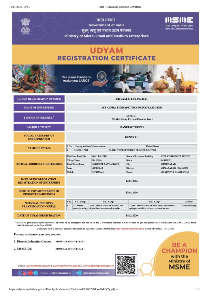 ATPL the name which denotes caring approach, having sound infrastructure in pollution free environment covering 55000 sq ft land area and 20000 sq ft production area with class 10000 clean rooms.